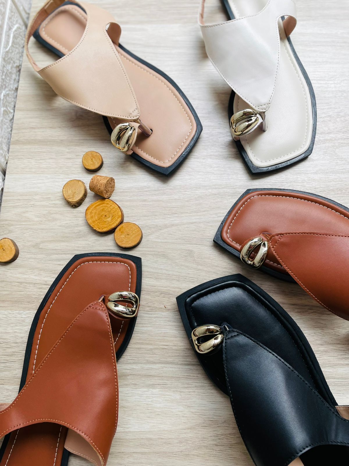 O detalhe dourado e geométrico na ponta é o ponto focal que eleva a peça, enquanto a tira traseira ajustável oferece o conforto necessário para você esbanjar estilo sem esforço.