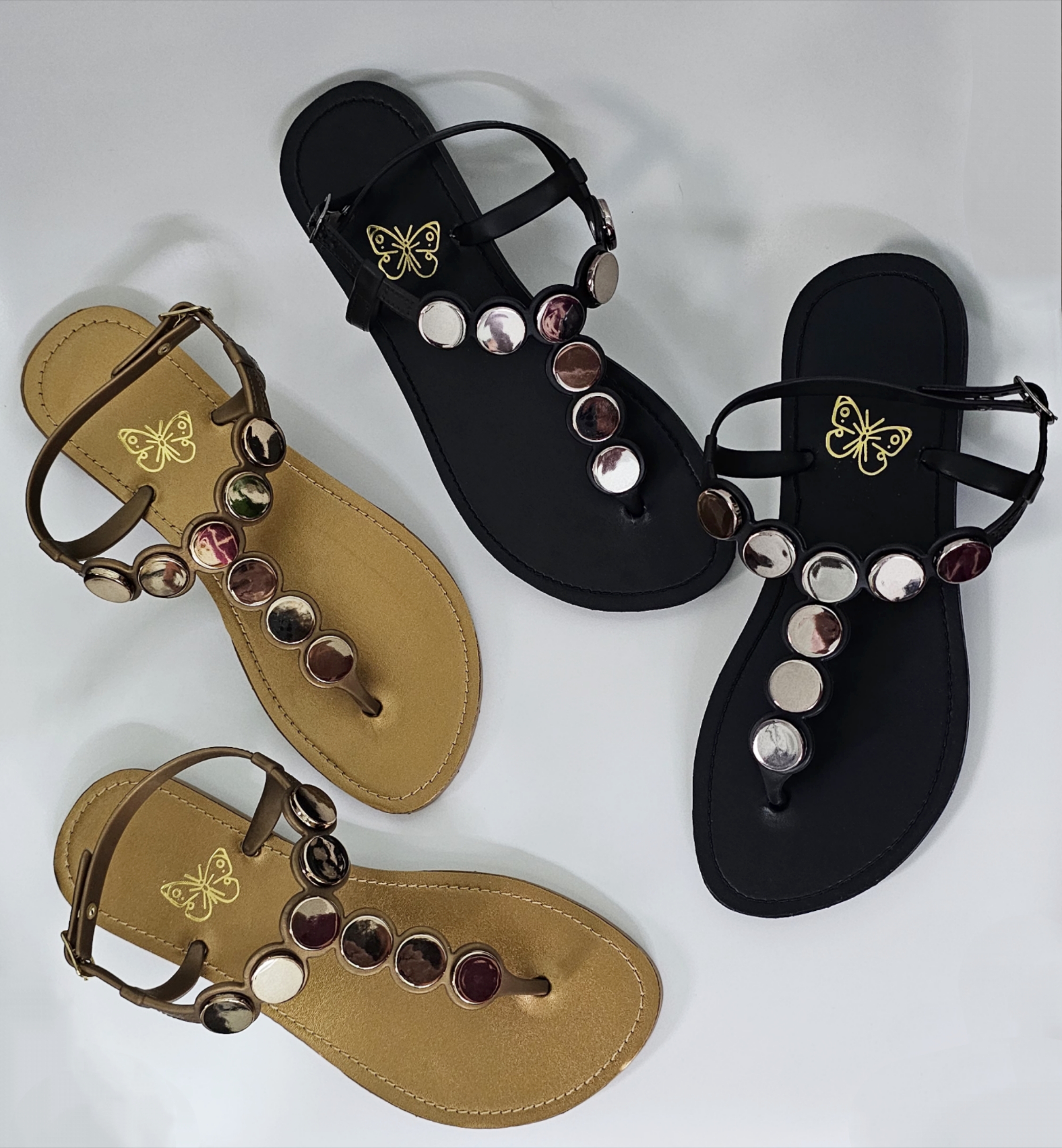 Design Sofisticado: O detalhe das aplicações circulares metálicas no cabedal transforma uma rasteira simples em uma peça de destaque, elevando instantaneamente qualquer look.